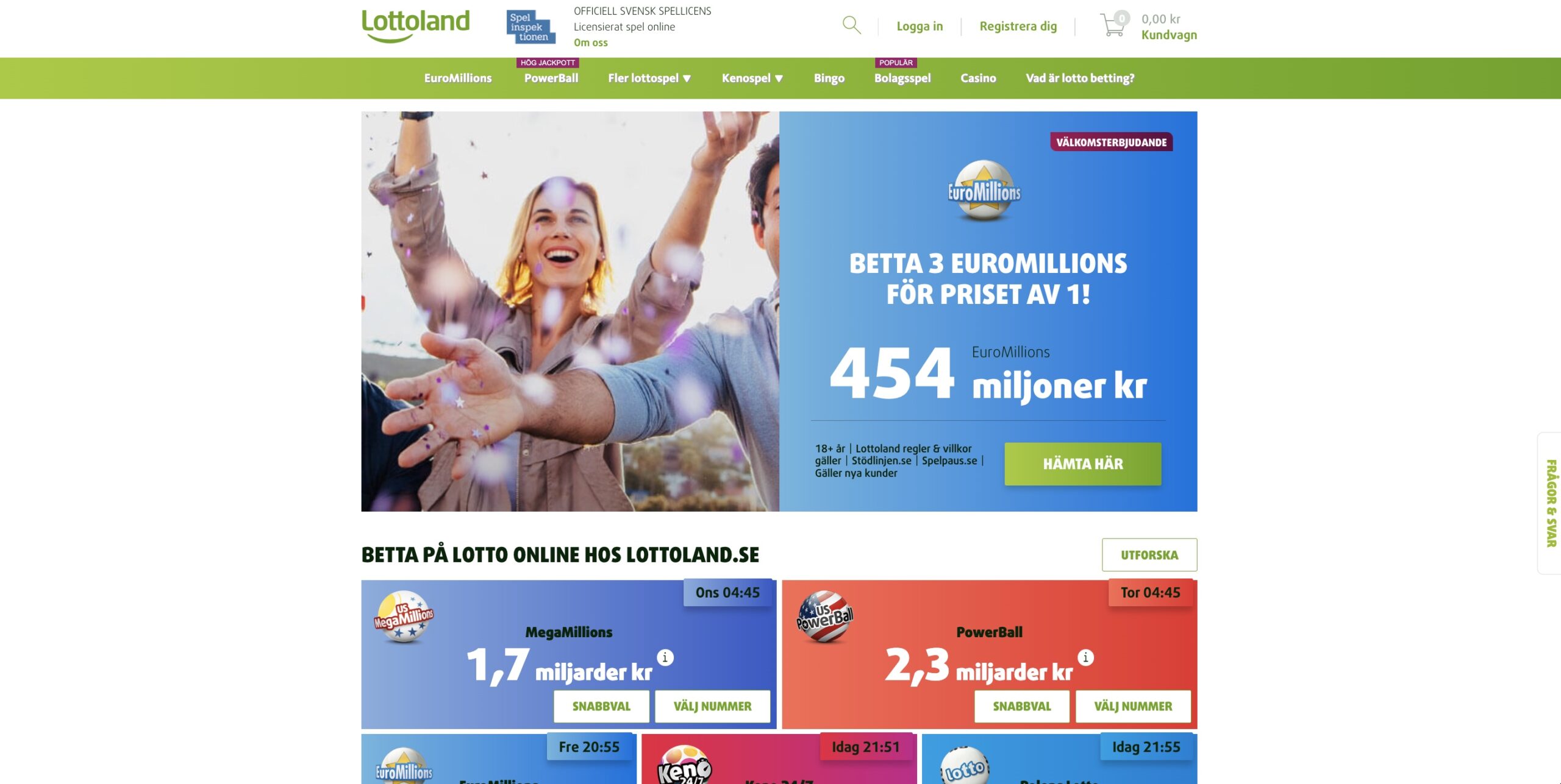 18+ år|Lottoland | Regler & villkor gäller|Stödlinjen.se|Slutaspela.se | Nya kunder | Endast utvalda slots | x30 omsättningskrav | Giltig 60 dagar