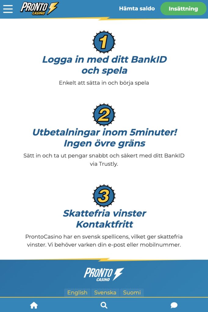 | Hemsida | https://www.prontocasino.com/sv/ |